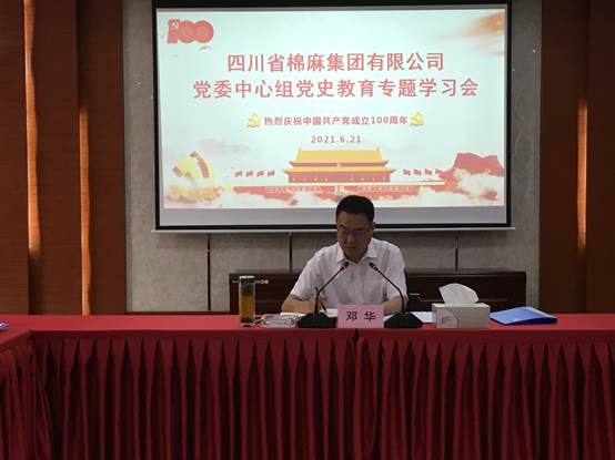 在小結講話中,鄧華要求,一是堅定制度自信,增強制度自覺。要堅定理想信念,永葆對黨絕對忠誠的政治品格;要樹立辯證史觀,正確看待社會主義革命和建設時期歷史;要牢牢把握規律,不斷強化走中國特色社會主義道路堅定決心;要賡續精神血脈,大力弘揚艱苦奮斗的創業精神。二是提高政治站位,扎實學習教育。無論集團層面,還是各黨支部、各部門、各子(分)公司都要根據省社黨組及集團公司黨委安排,高標準高質量組織好“四史”學習教育。三是弘揚偉大精神,不斷“攢勁”聚力。要?從黨史中涵養“鋼少氣多骨頭硬”的精氣神,攢“拼勁”,勇于面對各種風險挑戰,著力破解各種制約發展的瓶頸和問題,奮力推進各業務板塊高質量發展;要從黨史中厚植“一枝一葉總關情”的為民情懷,攢“親勁”,各級黨員干部特別是班子成員,要主動帶頭深入基層一線,苦干實干,在項目、業務落地落實中出智出力解難題,在“我為群眾辦實事”實踐活動中為職工群眾謀福利;從黨史中弘揚“敢教日月換新天”的奮斗精神,攢“干勁”,各級黨員干部要弘揚艱苦奮斗的精神,以夢為馬,以實干為鞭,立下硬決心、拿出硬舉措,敢挑最重的擔子,敢啃最硬的骨頭,敢接最燙的山芋,躍馬揚鞭,把“小我”融入到“大我”中,把青春融入到棉麻高質量發展的進程中,以不負韶華、不負時代的姿態,在新征程的路上吹起想為、敢為、善為的擔當實干之風。